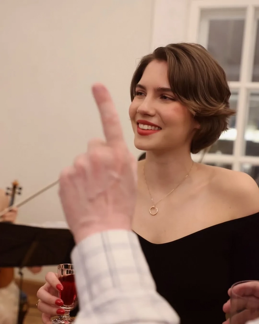 Перед гостями 22-летняя Юмашева, у которой прежде были длинные волосы, появилась с короткой стрижкой и в чёрном платье, открывающем плечи. При этом в соцсетях некоторые решили, что Мария находится в положении. Однако эту информацию в своём телеграм-канале опровергла Божена Рынска. "Нет, Маша точно не в положении. Инфа 100%", — написала она.