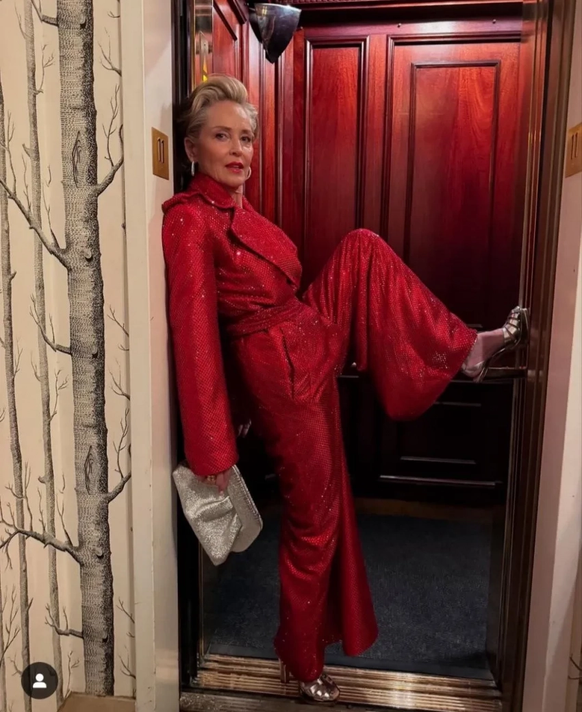 Костюм в стразах и платье с разрезом: Шэрон Стоун продемонстрировала два ярких образа