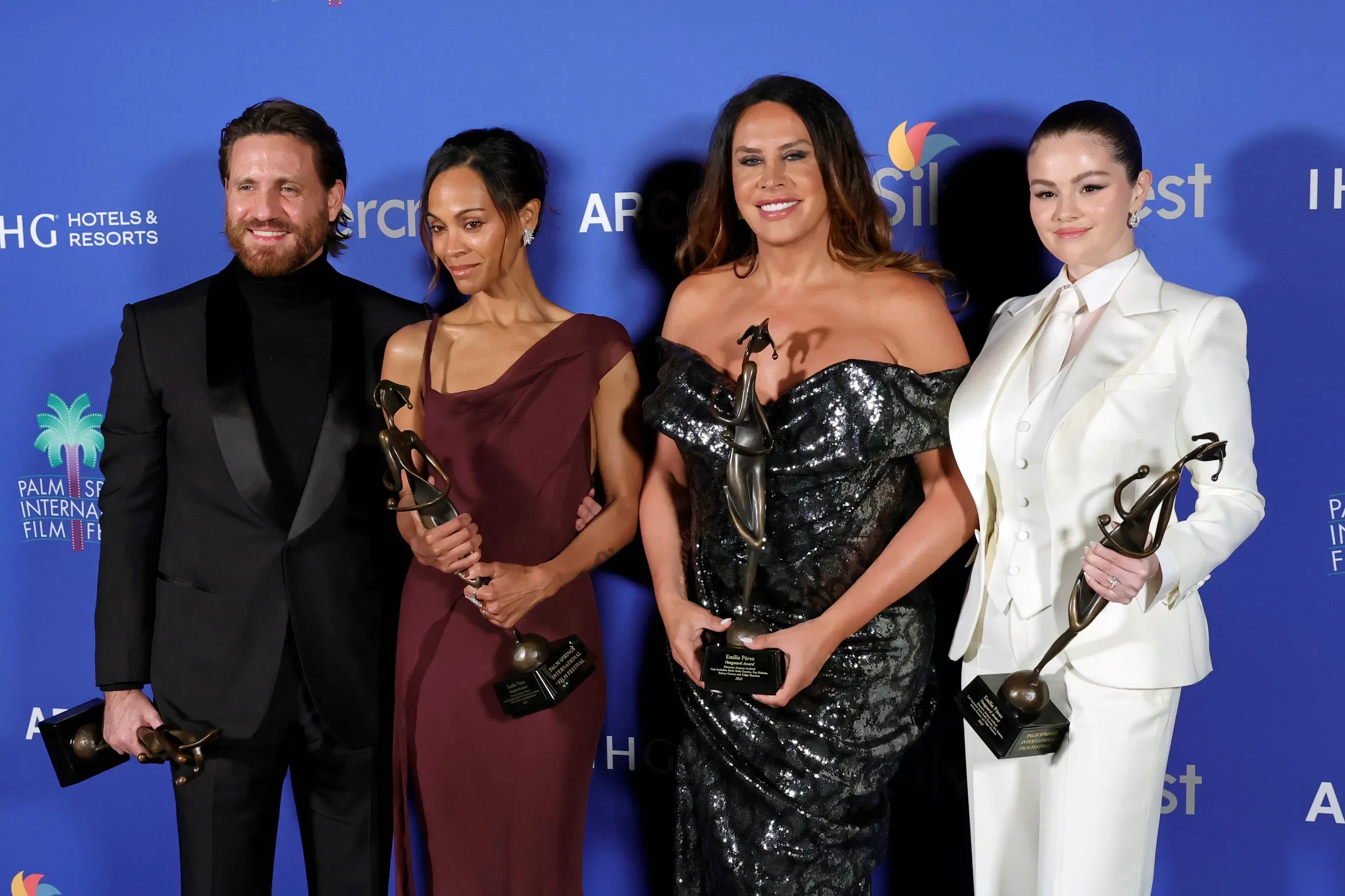 Эдгар Рамирес, Зои Салдана, Карла София Гаскон и Селена Гомес/Фото: Kevin Winter/Getty ImagesПосле того, как Гаскон публично осудили за ее высказывания, она дала официальный комментарий DailyMail: “Я хочу признать тот факт, что обсуждение моих старых постов в социальных сетях причинило многим боль. Как представитель маргинализованного сообщества, я слишком хорошо понимаю эти страдания и глубоко сожалею, что причинила их другим. Всю свою жизнь я боролась за лучший мир. Я верю, что свет всегда восторжествует над тьмой”.