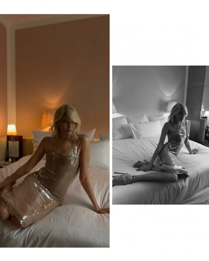 На фото бывшая возлюбленная миллиардера Александра Лебедева позирует в чёрном облегающем платье в ресторане, в объёмном жакете на фоне Эйфелевой башни, а также в блестящем наряде в отеле Le Royal Monceau. "Новая эра. Как вам?" — спросила подписчиков Елена. Под снимками из отеля она написала: "Не твоя Барби".