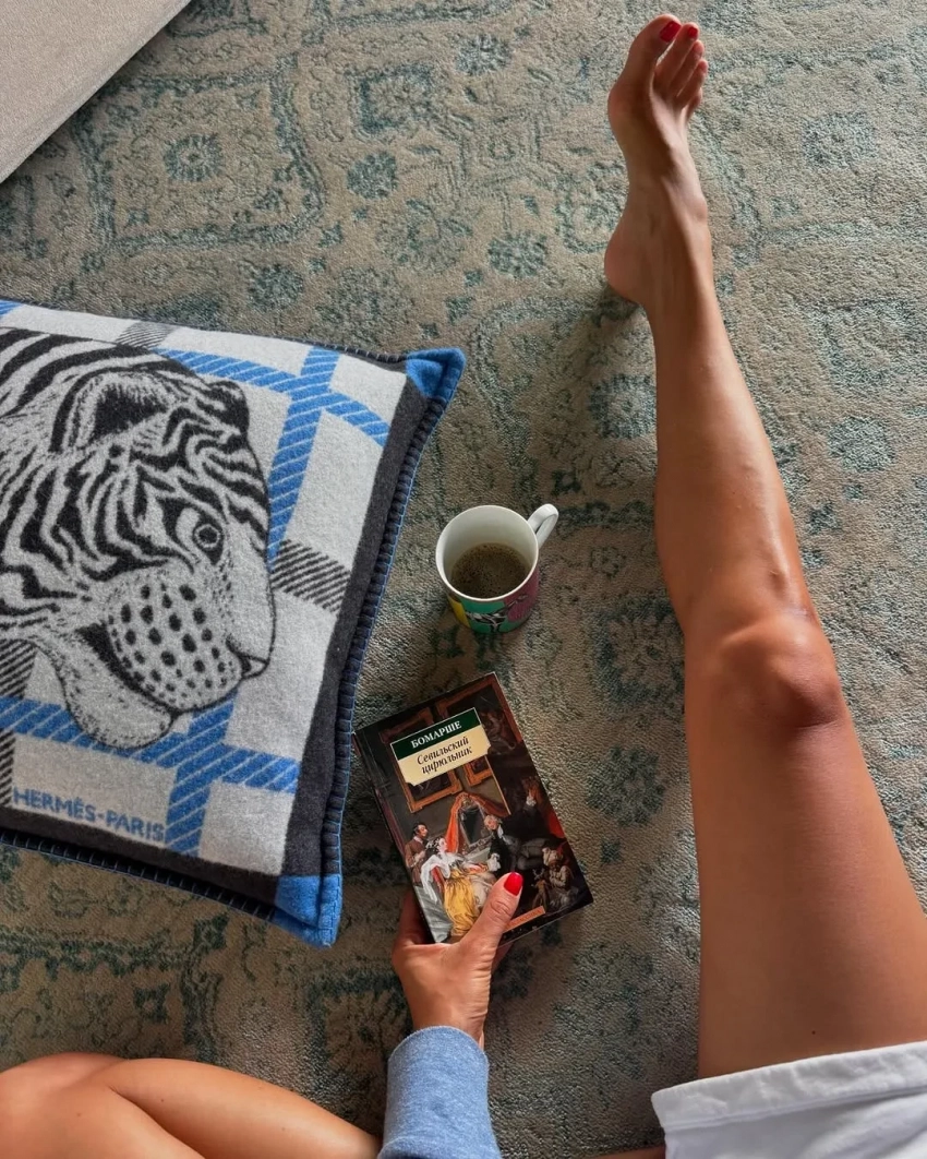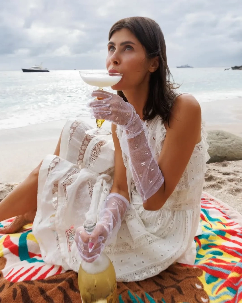 На фото Надежда позирует в белом платье и перчатках Chanel на пикнике на пляже, занимается йогой, читает книгу и загорает в бикини. "Остров радости", — подписала кадры невеста бизнес-партнёра Романа Абрамовича.