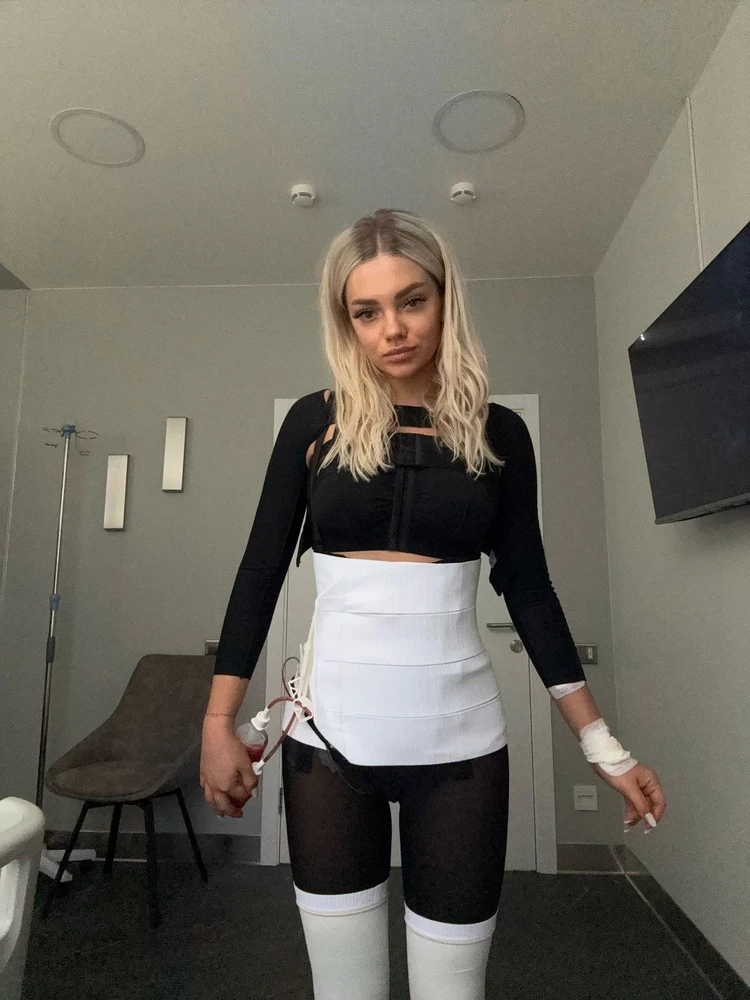 Комплексная операция, которая, по некоторым данным, обошлась Козловой примерно в 2,5 млн рублей, включала в себя липосакцию, ушивание диастаза, липофилинг и работу с грудью.
