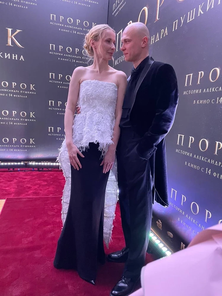 Роскошную премьеру организовали в Михайловском театре – том самом, который иногда в фильмах и сериалах «играет роль» Большого театра. Вход в храм искусств был украшен факелами, а гостей встречали мужчины в цилиндрах и дамы в кринолинах. Внутри, что называется, яблоку было негде упасть – журналисты, фотографы, актеры, медиаперсоны… Кого тут только не было! 15-летняя звезда «Слова пацана» Аня Пересильд с папой-режиссером Алексеем Учителем, музыкант и телеведущий Юрий Музыченко, блогер и журналист Ксения Собчак, актеры Павел Табаков, Кристина Асмус, Екатерина Вилкова и многие-многие. И это не считая съемочной группы и артистов, задействованных в фильме: Анна Чиповская (сыграла графиню Воронцову), Сергей Гилев (Александр Бенкендорф), Илья Любимов (Василий Жуковский), Роман Васильев (Константин Данзас). Но все ждали, конечно, Юру Борисова, который сыграл зрелого Александра Сергеевича (в фильме Пушкина сыграли разные актеры в детстве и молодости).