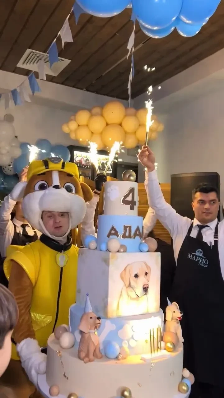 На видео в инстаграме* запечатлён праздник, который семья отметила в одном из столичных заведений. На мероприятии присутствовали близкие и друзья юного именинника. В качестве развлечения были приглашены аниматоры с четвероногими помощниками — пуделями, далматинцами и другими собаками. Кети рассказала, что её сын очень любит собак, поэтому они стали своеобразным символом вечеринки. В конце вечера Адаму вынесли многоярусный торт голубого цвета.