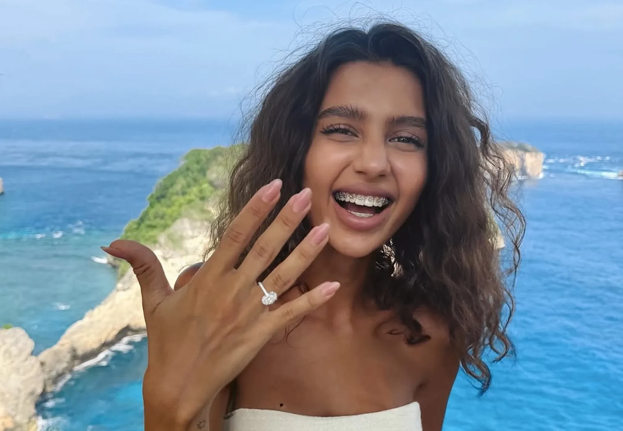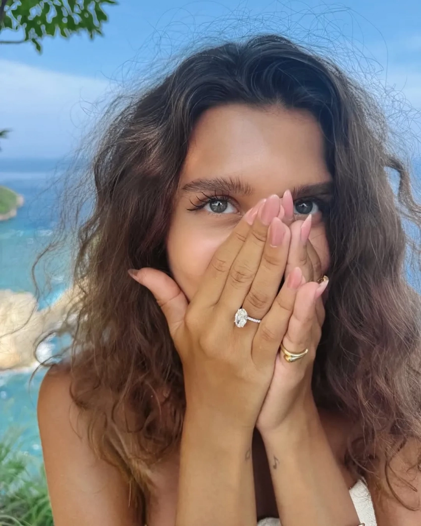 "Пока не понимаю, что произошло. Смеёмся и плачем от счастья второй день. Вернусь скоро со сторителлингом", — подписала снимки Анфиса, на которых она позирует на фоне балийских пейзажей с бойфрендом и бриллиантовым кольцом на пальце.