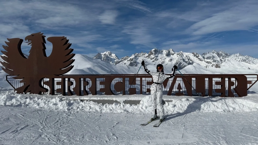 Инфлюенсер и основательница агентства Setters Саша Жаркова отдыхает на горнолыжном курорте во Французских Альпах. Блогер поделилась отпускными снимками в соцсетях.
