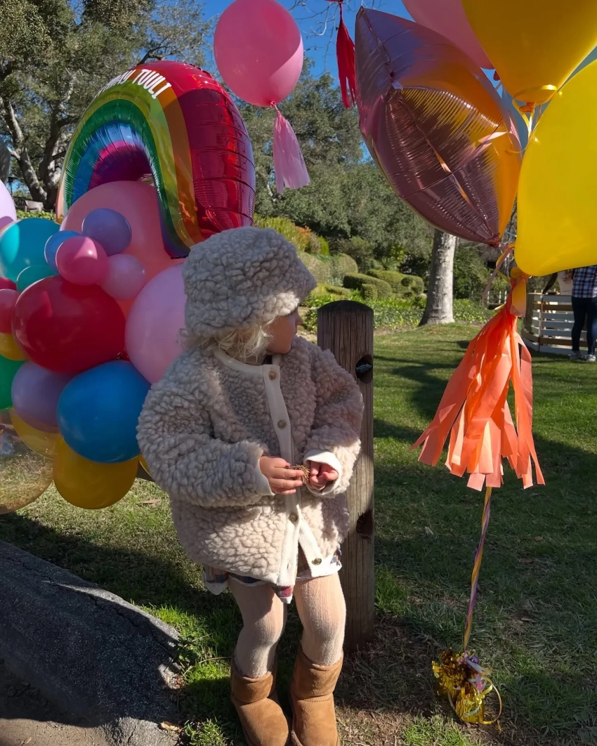 На снимках девочка празднует день рождения вместе с аниматором и семьёй. На одном из фото модель вместе с Тууликки прыгает на батуте. Также Эльза Хоск добавила несколько архивных кадров с прошлых дней рождения дочери.