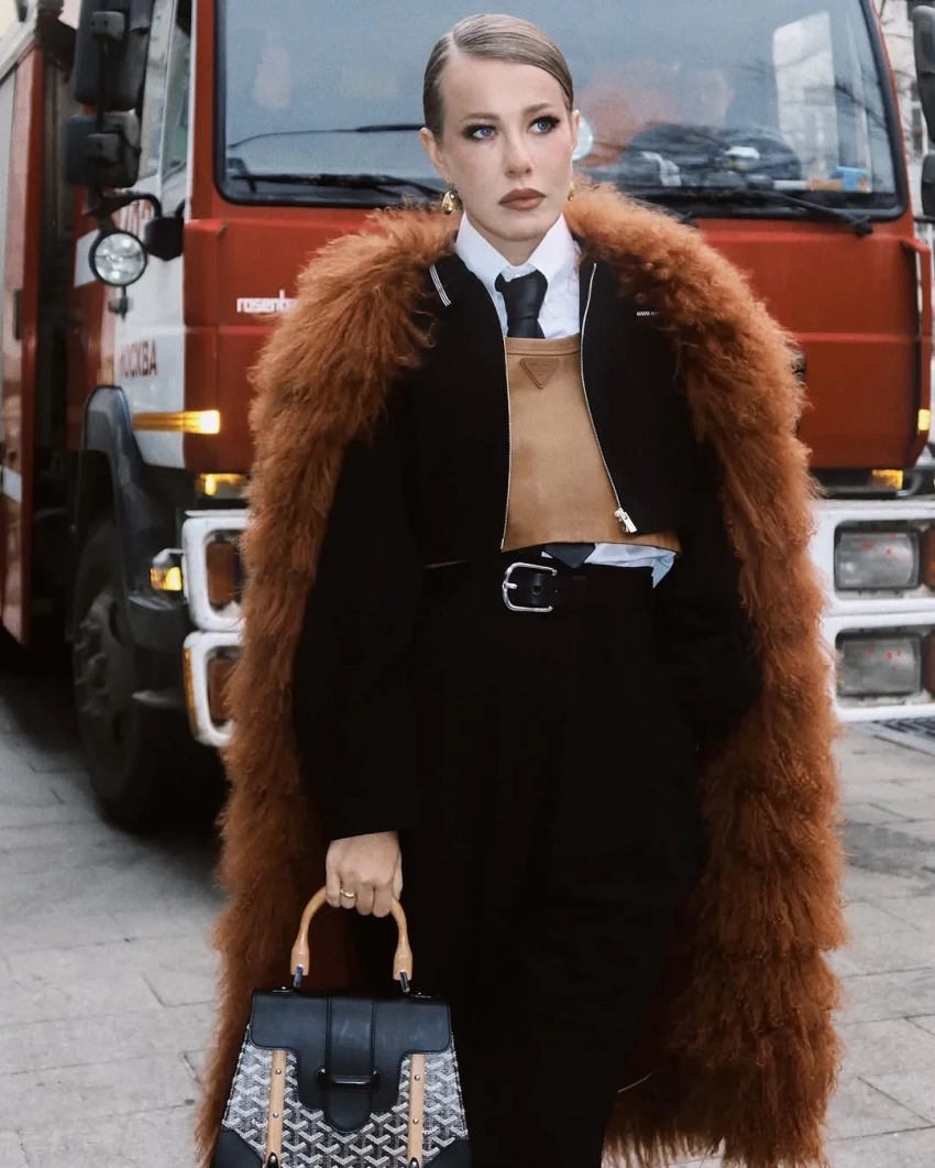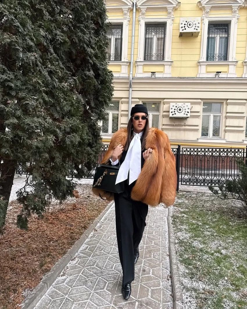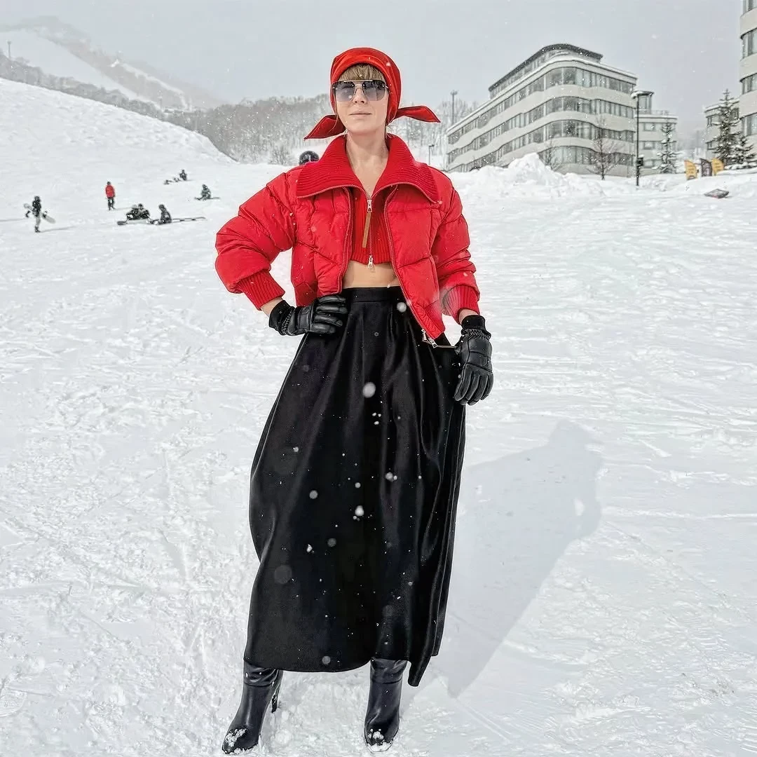 Алла Брулетова посетила ивент Prada в Абу-Даби в тотал-луке бренда, а Полина Подплетённая и Алексей Жидковский выгуляли свои шубы. Вика Газинская отправилась в лыжный тур на японский остров Хоккайдо, но не забывает о модном контенте. Дизайнер позирует на фоне гор в красной косынке, очках, сапогах на каблуках и короткой куртке. Екатерина Мухина, которая тоже отдыхает в Японии, предпочитает более сдержанные луки.