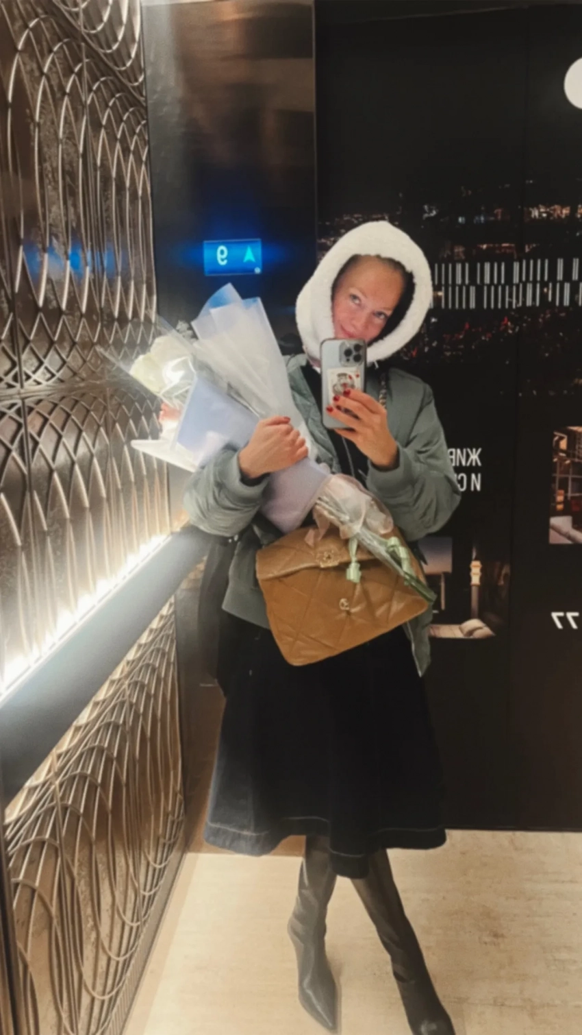 Светлана Ходченкова позирует с цветами от поклонников после спектакля. Актриса носит расклёшенную юбку миди с сапогами на каблуках и меховой шапкой-капюшоном. Тем временем коллега Светланы Анна Александрова в мини-шортах сходила на мероприятие в бар "Шаляпин".
