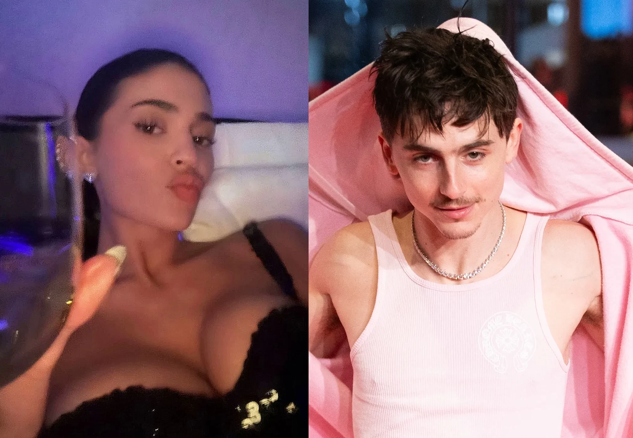 Она — в сверкающем вечернем платье. Он — в розовой толстовке. Кайли Дженнер и Тимоти Шаламе снова вместе вышли в свет
