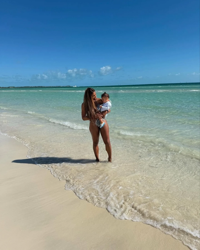 "Моя мини-мини захотела окунуться в океан. Я не могла ей отказать", — подписала фотографии Серена.