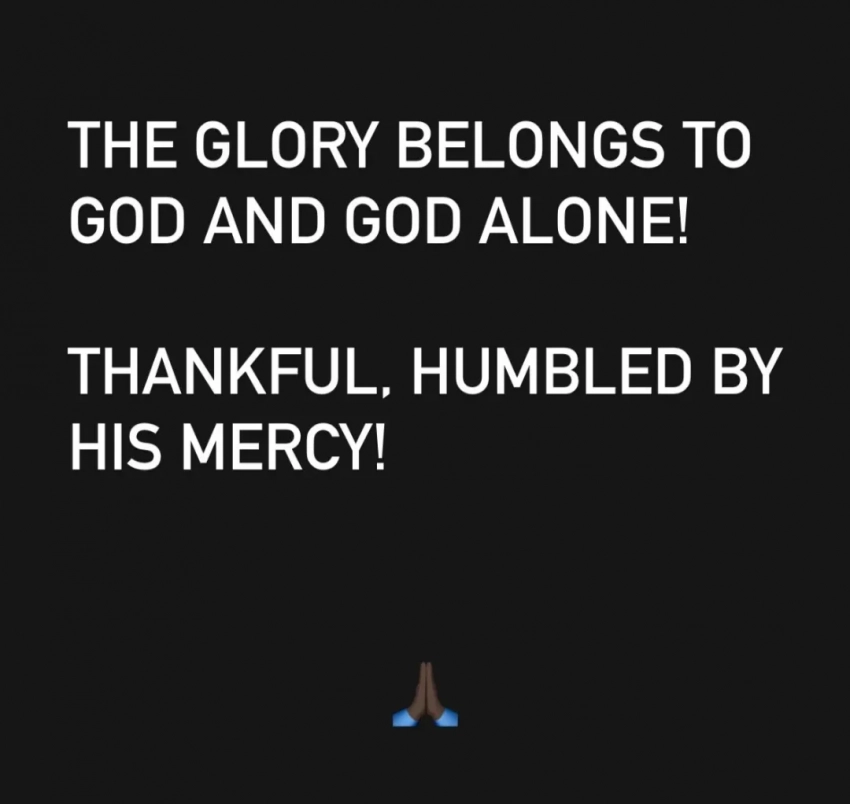 "Слава принадлежит богу и только богу! Благодарна, смирена его милостью", — написала Рианна в инстаграме*.