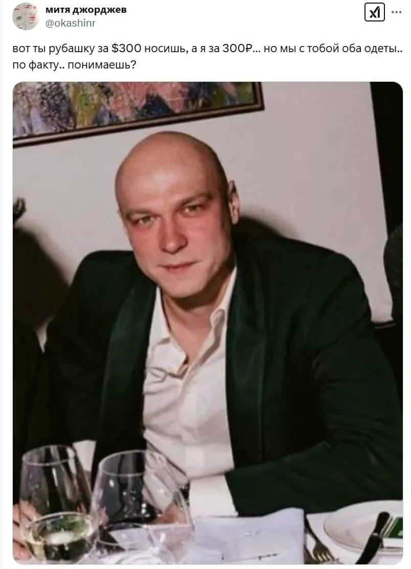 В сети завирусилось фото Юры Борисова, снятое во время вечеринки на премии BAFTA. На снимке он сидит за столом вместе с Марком Эйдельштейном, рядом с ним несколько бокалов. Поза, внешний вид и расслабленное выражение лица Борисова рассмешили русскоязычных пользователей интернета и вызвали самые разные ассоциации — с батей, "тем самым дядей", персонажем из 90-х и даже "директором лесозаготовительного завода". Теперь в соцсетях люди придумывают смешные брутальные подписи к этой фотографии и шутят над актёром. Интересно, что в фильме "Анора" героя Борисова полюбили именно за такой вайб.