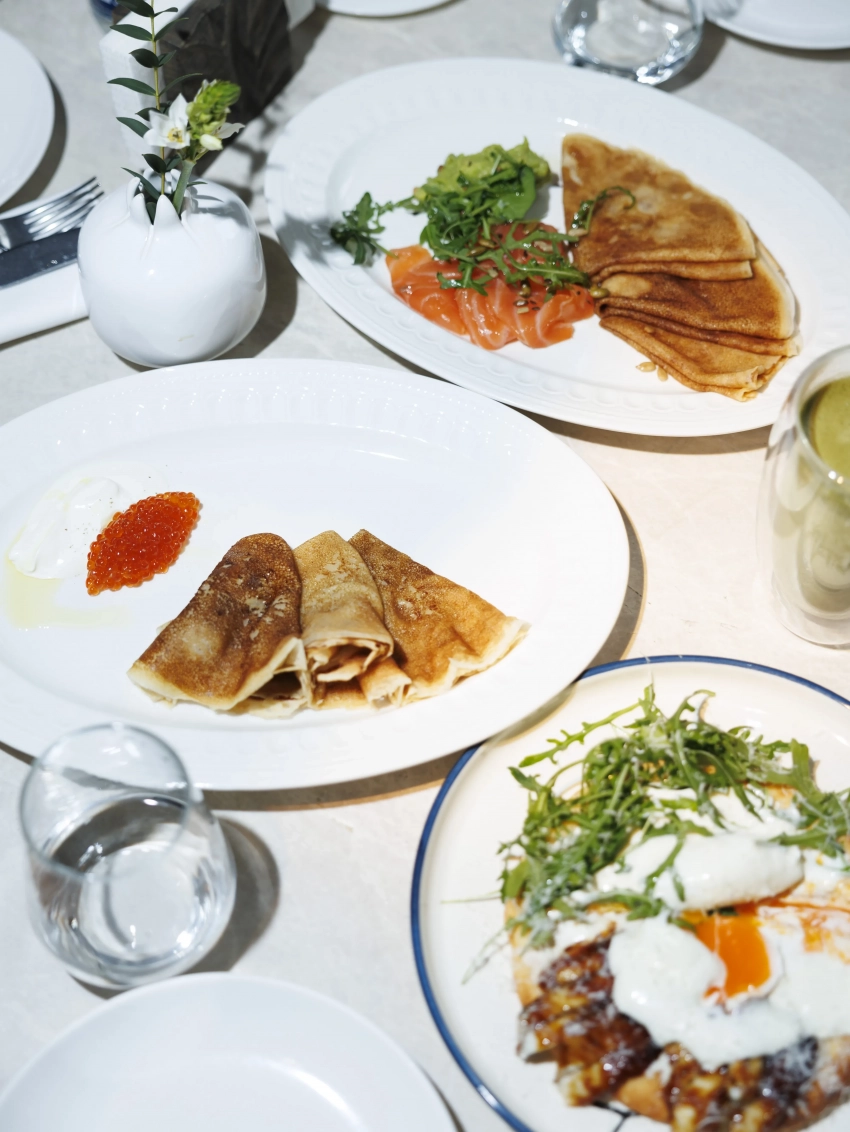 Полина АскериМаша ФедороваЮлия ХлынинаВиталий Истомин и Наталья БардоМарика Кравцова и Артем ЛосевНаталья Бардо и Елена ПинскаяАлена ЧеховаВиктория ПоляковаЕкатерина ДобряковаЕлена Дудина с дочерьюИрина ЕлизароваИрина ШапироКристина КаширинаСнежина КуловаГостей угощали блинами (с греческим йогуртом и клубникой, со сметанным кремом и малиной, с лососем и гуакамоле, с мортаделлой и красной икрой), круассанами с пармской ветчиной, йогуртовыми лепешками из печи со сливочной страчателлой, угрем и яйцом пашот. В дополнение к завтракам предагались два коктейля на основе Prosecco Bruni: Peach Collins (с дистиллятом персика и Рислингом) и Rose French (с дистиллятом розы и барбарисом).