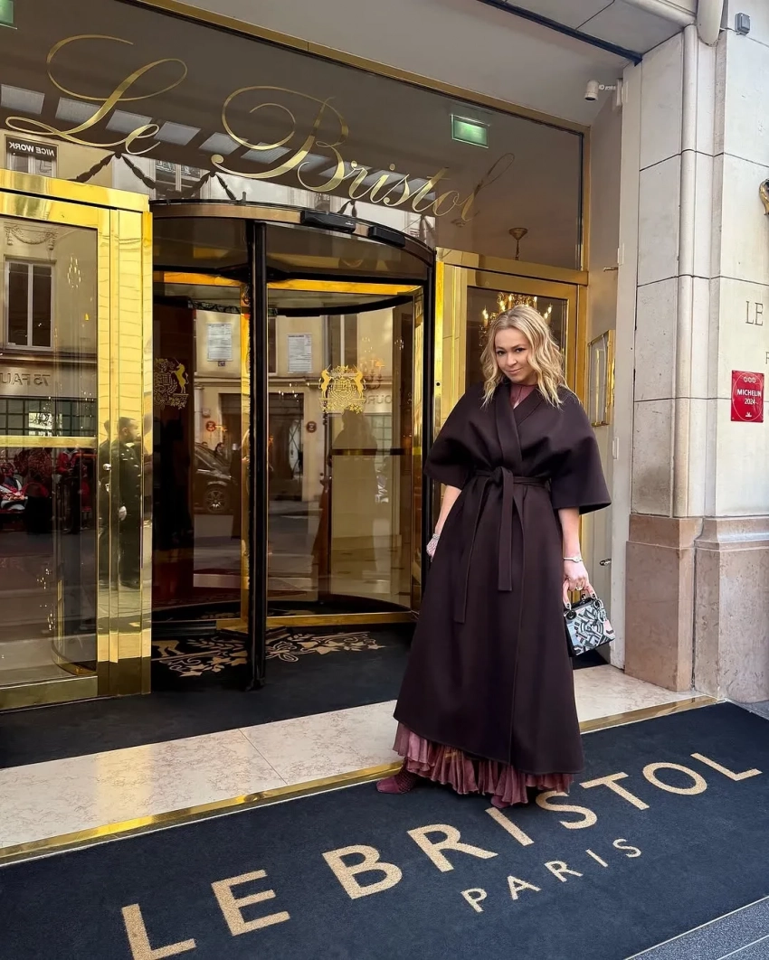 Нарядный Николай Василенко гуляет по Дубаю, а Полина Киценко утеплилась трендовой меховой манишкой Sancellerie. Яна Рудковская позирует на фоне парижского отеля, в котором она сняла панорамный сьют в 160 квадратных метров, в коричневом пальто-халате и с любимой сумкой Dior. Анастасия Миронова примерила платье Murashka с глубоким декольте, а Юлия Высоцкая показала архивное фото в шубе и босоножках.
