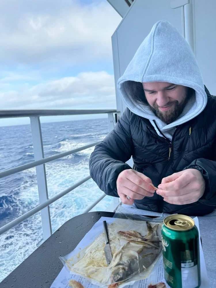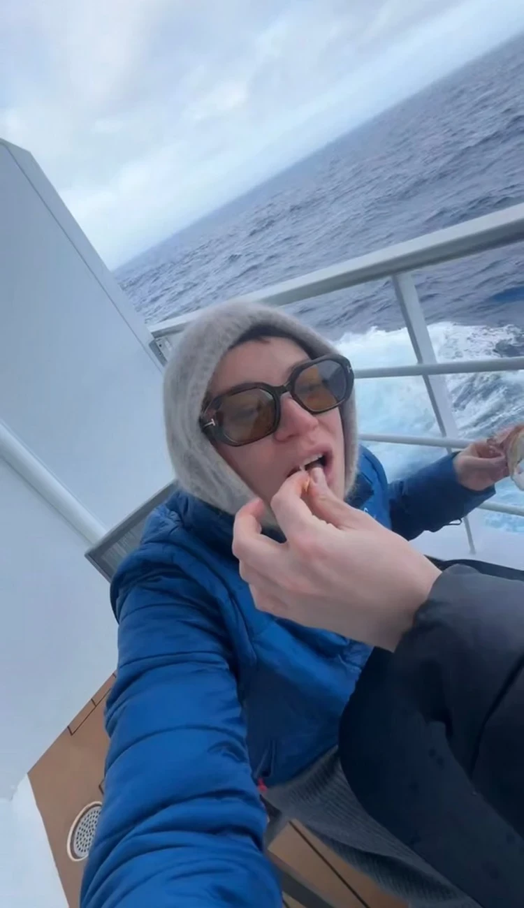Из дома блогер привезла с собой вяленую рыбу, чтобы поесть ее на обратном пути, сидя на балконе судна. Ида с возлюбленным, укутавшись в теплую одежду, устроили себе необычный пикник неподалеку от Антарктиды.