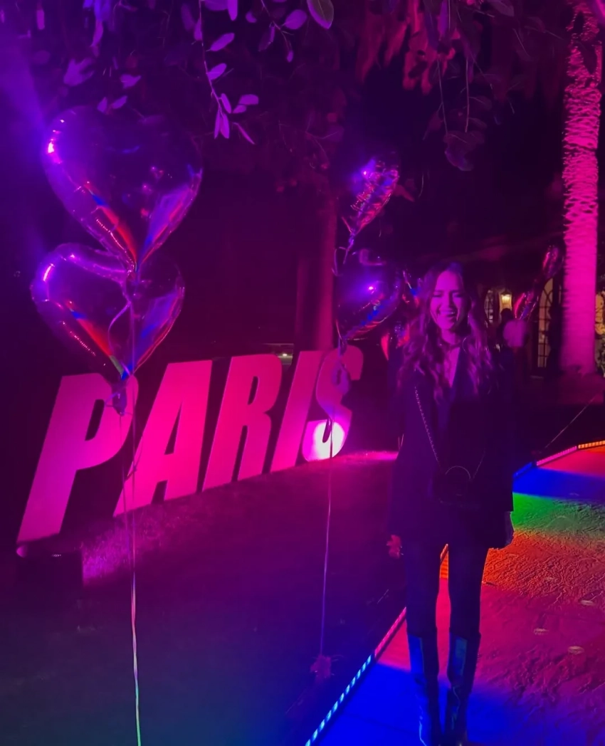 "Только иконы собрались на лучшей вечеринке этого года! Я чувствовала себя любимой, празднуя свой день рождения с таким количеством друзей! Спасибо всем, кто пришёл и был со мной! Люблю вас всех! Не могу дождаться следующего года!" — написала Хилтон в соцсетях. Звезда выбрала для вечера короткое розово-фиолетовое платье и сапоги со стразами, солнцезащитные очки и чокер в тон. Образ напомнил наряд Пэрис на её вечеринке в честь 21-летия, который впоследствии стал культовым: платье и чокер Julien Macdonald с тысячами кристаллов Swarowski.