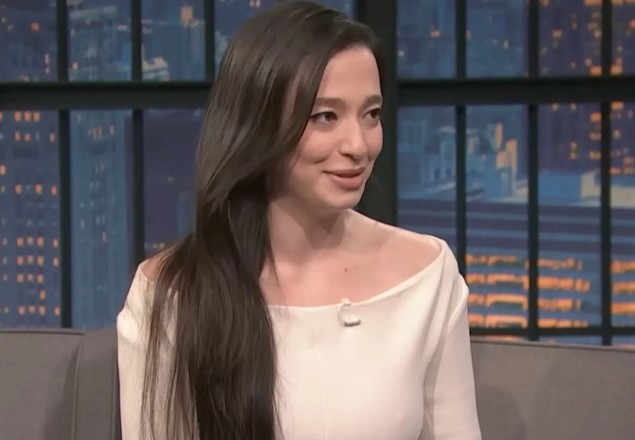 Майки Мэдисон на шоу/Фото: кадр из видео/Late Night with Seth MeyersПо словам Майки, со своими партнёрами по съёмочной площадке она пару раз выезжала на природу на выходные. Во время одной из таких вылазок они "просто гуляли по лесу, шёл снег, и это было потрясающе". В какой-то момент от Юры и Марка поступило предложение. "Они сказали: "Завтра праздник, и мы должны его отметить". Утром они приготовили блины, и мы их ели. Я подумала: "Какой чудесный праздник". А потом Юра, который играл у нас роль весельчака, такой: "А теперь нам надо пойти в лес и сделать человека из дерева, чтобы потом его сжечь", — смеясь, рассказала Майки, показывая ведущему мимикой и жестами, что была в недоумении от такой идеи.