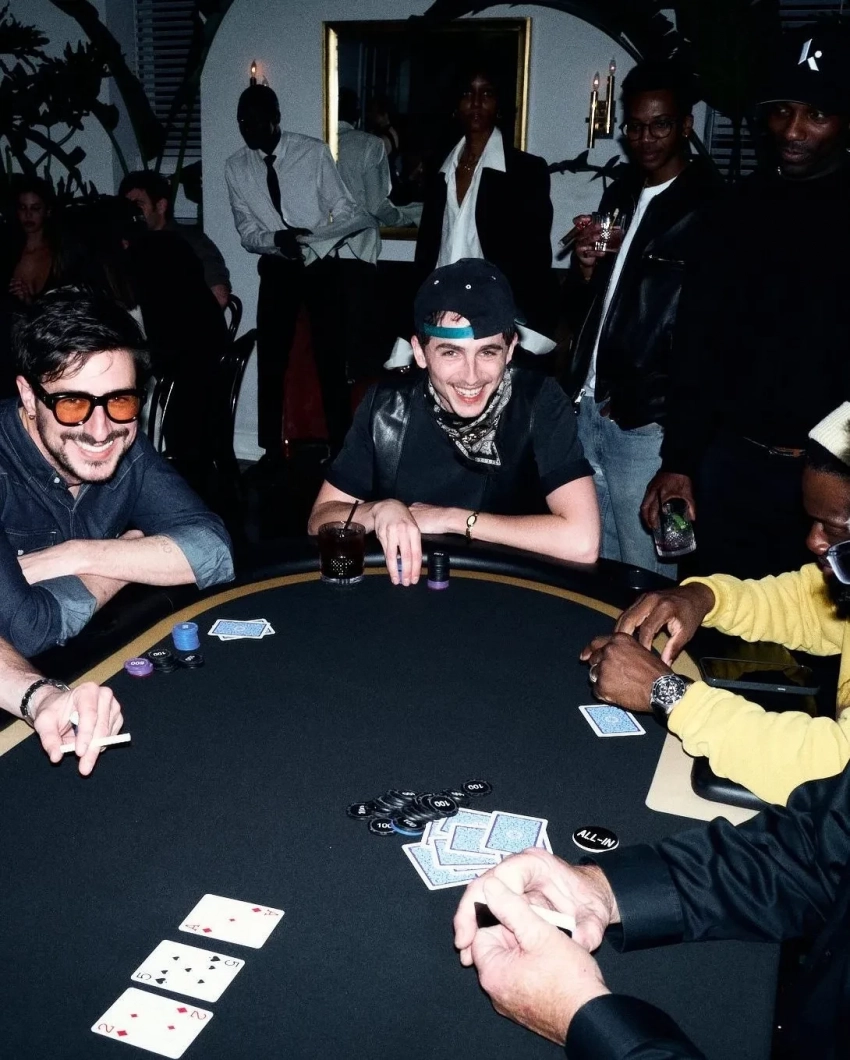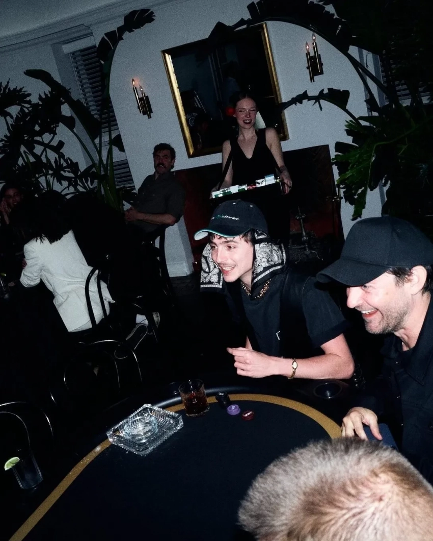 Тимоти Шаламе и его девушка Кайли Дженнер посетили покерную вечеринку Cartier в отеле Chateau Marmont в Лос-Анджелесе. Она приурочена к предстоящей церемонии вручения премии "Оскар", на которую номинирован Шаламе.