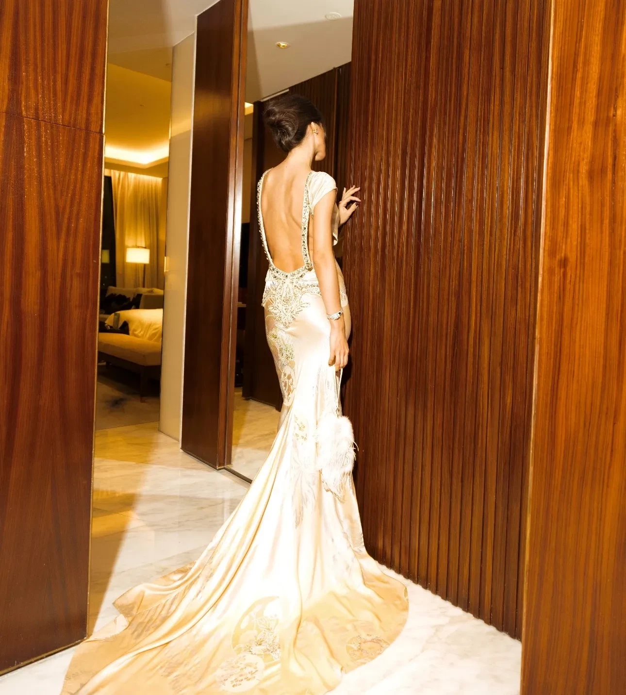 Шипилова надела на мероприятие платье сливочного оттенка с открытой спиной и дополнила образ сумкой с перьями. Ксения рассказала, что Наталья лично пригласила её прилететь на ужин в Дубай, а сам фонд планирует в скором времени вернуться с ивентами в Россию. "Мы познакомились с Натальей в январе, и она пригласила меня. Кстати, фонд "Обнажённые сердца" планирует ряд мероприятий в Москве в этом году".