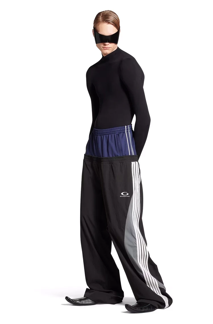 Демна Гвасалия не перестает радовать безумными творениями за бешеные деньги. Так, на сайте Balenciaga можно найти очень оригинальные брючки, которые выглядят так, будто «скрестили» две пары старых треников Adidas. Цена штанишек 200 000 рублей…