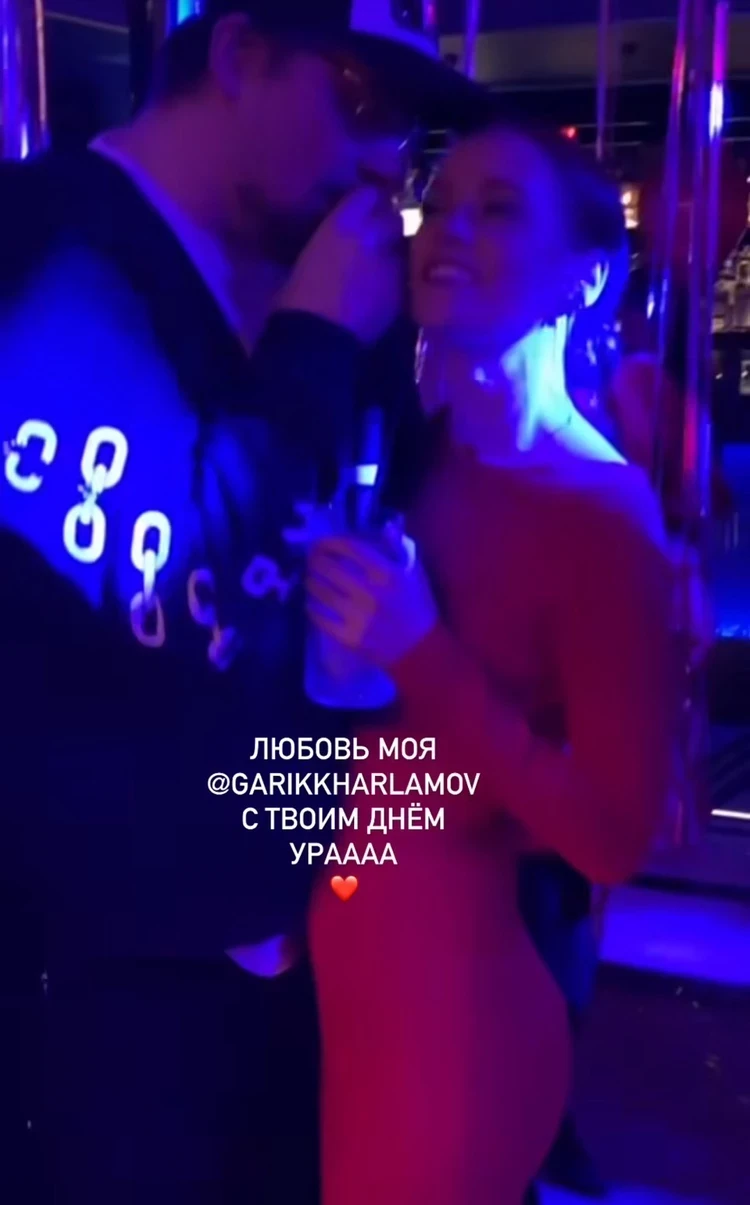 На видео Гарик и Кристина едут в поезде, он дремлет. Она в этот момент смотрит сериал и параллельно снимает его на телефон. Потом опускает камеру вниз и показывает, как Харламов нежно держит ее за ногу…