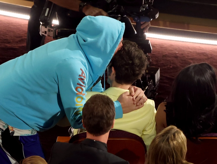 Во время небольшого перформанса в зале Сэндлер подбежал к ничего не подозревающему Тимоти и прокричал ему в ухо "Шаламе!". И сам Шаламе, и зал со смехом встретили выходку актёра.