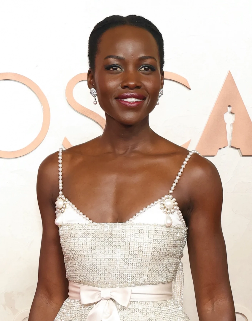 Эмма Стоун примерила лаконичный образ в стиле 1920-х: блестящее платье-майку Louis Vuitton и укладку в духе "старого Голливуда". Обладательница звания "Модель года — 2024" Анок Яй выбрала трендовое сочетание оттенков и позировала на дорожке в кастомном платье Marni бронзового оттенка с тёмно-коричневой накидкой из перьев. Ещё один модный образ выгуляла звезда "Бруталиста" Фелисити Джонс в серебристом платье Armani с бантом. Лупита Нионго тоже надела наряд Chanel с бантом.