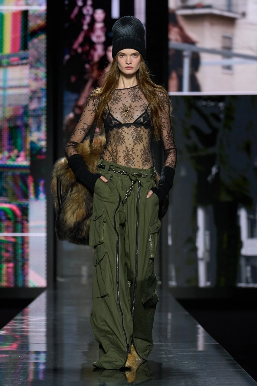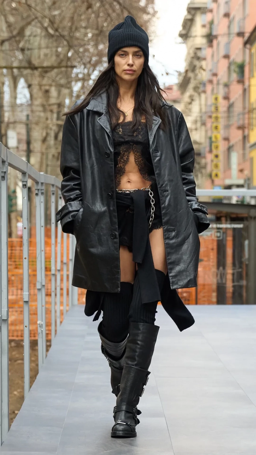 Наоми Кэмпбелл/Фото: Dolce & GabbanaВиктория Де Анджелис/Фото: Dolce & GabbanaЛеони Ханне/Фото: Dolce & GabbanaФай Хадра/Фото: Dolce & GabbanaОснователи бренда Доменико Дольче и Стефано Габбана устроили показ прямо на улицах Милана, который закончился вечеринкой под открытым небом, где с диджей-сетом выступила участница Måneskin Виктория Де Анджелис. Ирина Шейк, Амелия Грей и другие топ-модели начинали дефилировать на улице и продолжали в здании, а на финальном проходе они вернулись на улицу и танцевали под музыку под восторженные аплодисменты прохожих. В своей осенней коллекции бренд Dolce & Gabbana представили вещи, идеально подходящие для вечеринок до утра: кожаные плащи, шубы, короткие шорты, кружевные топы и платья с перьями, высокие сапоги, трикотажные чулки и шапки, чтобы точно не замёрзнуть на open air. Закрыла шоу грузинская модель Матильда Гварлиани в мини-платье, расшитом драгоценностями.