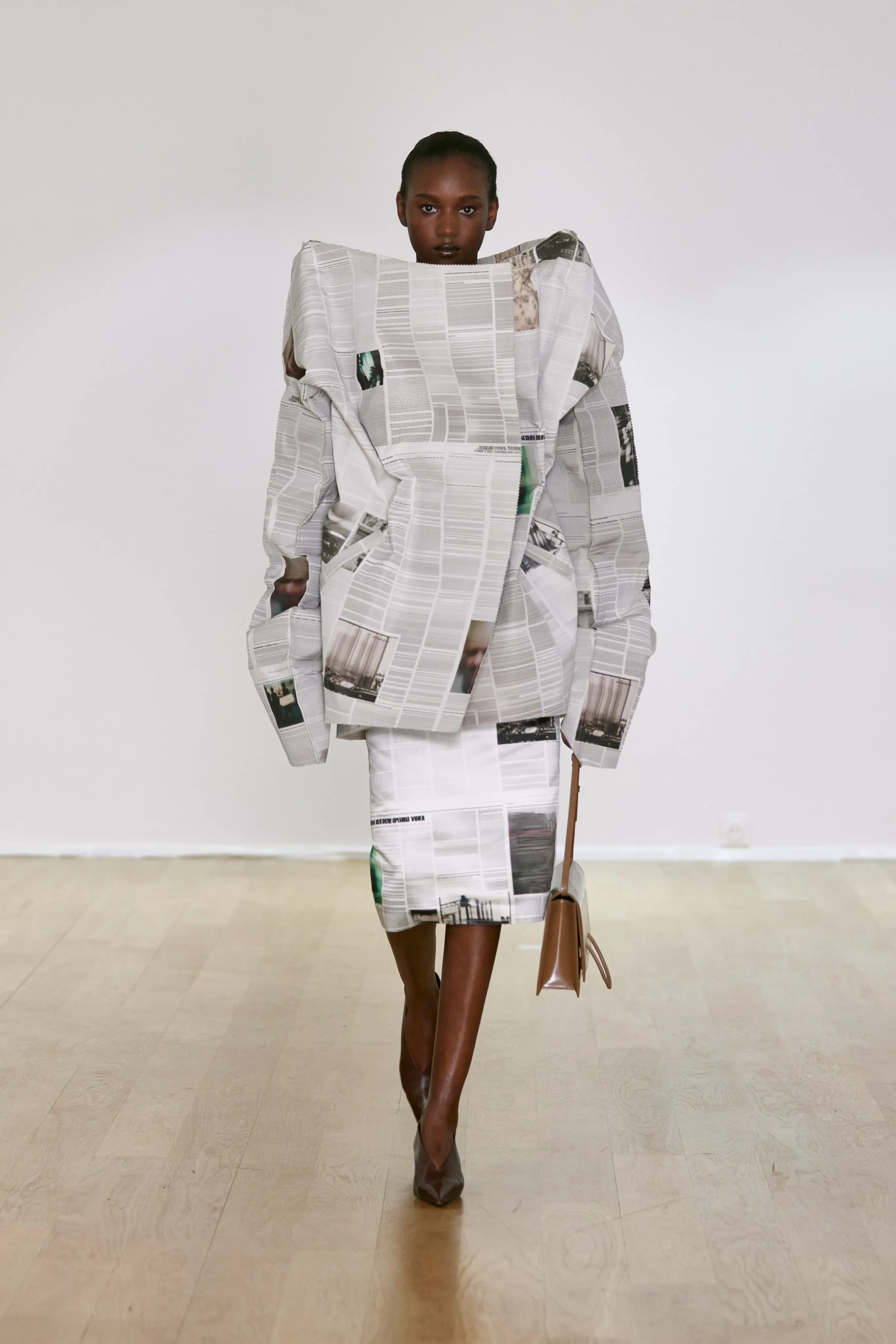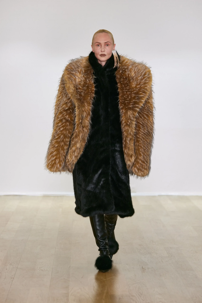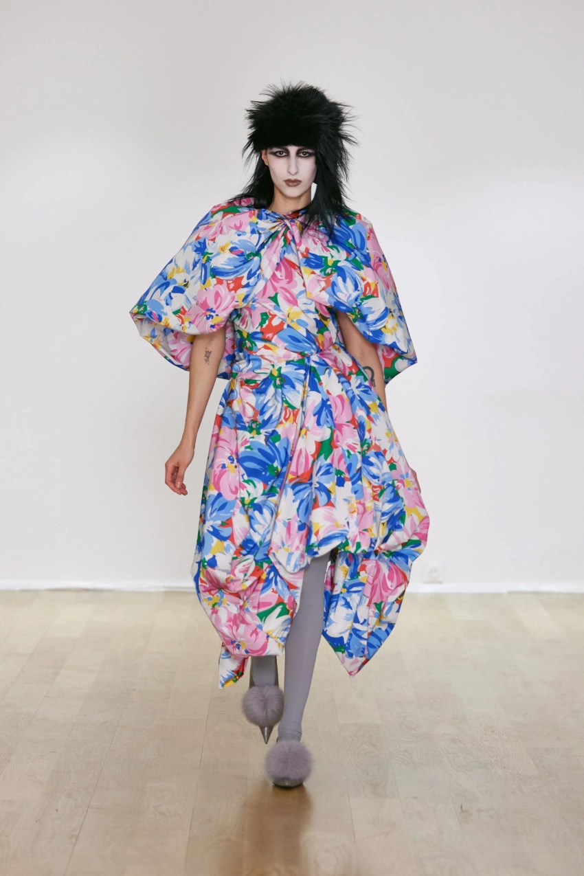 Ольга Карпуть прошлась по подиуму в двух шубах, кожаных сапогах и с моносерьгой, состоящей из "магазинной бирки" и двух серёг на ней. Также основатель бренда Abra Абрахам Ортуно Перес представил изделия с цветочным и газетным принтами, с декором в виде массивного цветка и платье из "фольги".