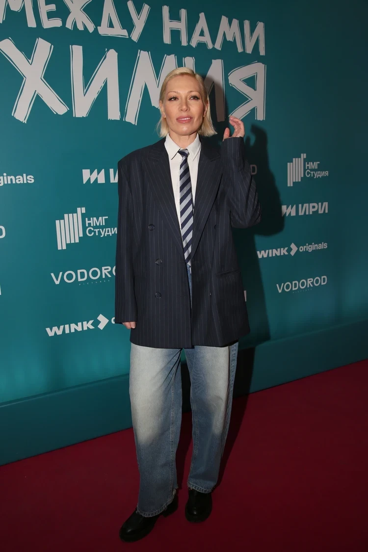 Еще одной яркой звездой показа стала Александра Бортич. Актриса давно не выходила в свет, но ради премьеры своей новой работы сделала исключение. Артистка появилась на красной дорожке в эффектном черном костюме – жакете и юбке с эффектным разрезом, обнажившем ее длинные стройные ноги.