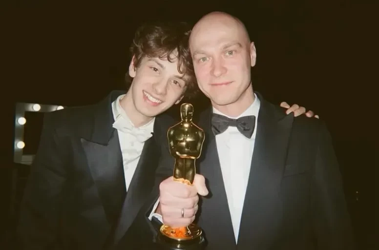 На снимках Марк Эйдельштейн и Юра Борисов с женой запечатлены в номере отеля за завтраком за несколько часов до церемонии. Кроме того, на новых фотографиях запечатлены первые моменты самой премии: Юра Борисов в костюме позирует вместе с Марком, а Майки Мэдисон — в зрительном зале.