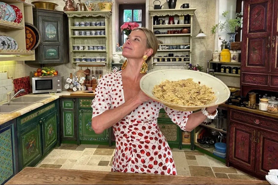 Юлия Высоцкая каждую субботу продолжает готовить в телеэфире. Фото — телеграм-канал Юлии Высоцкой.