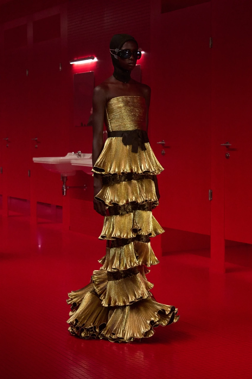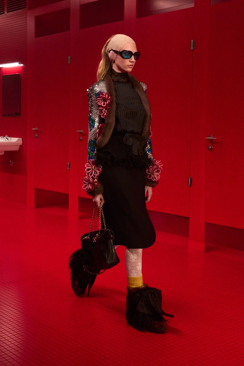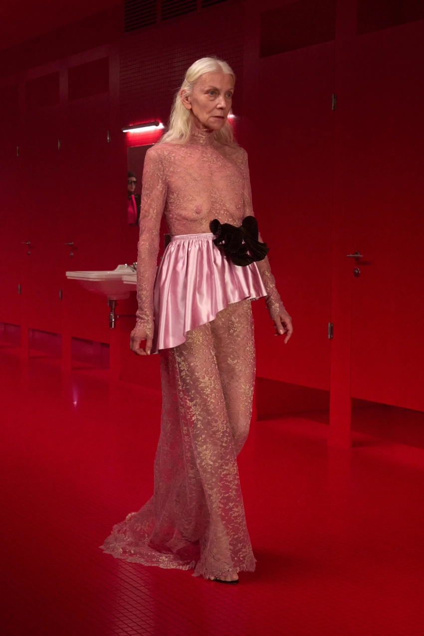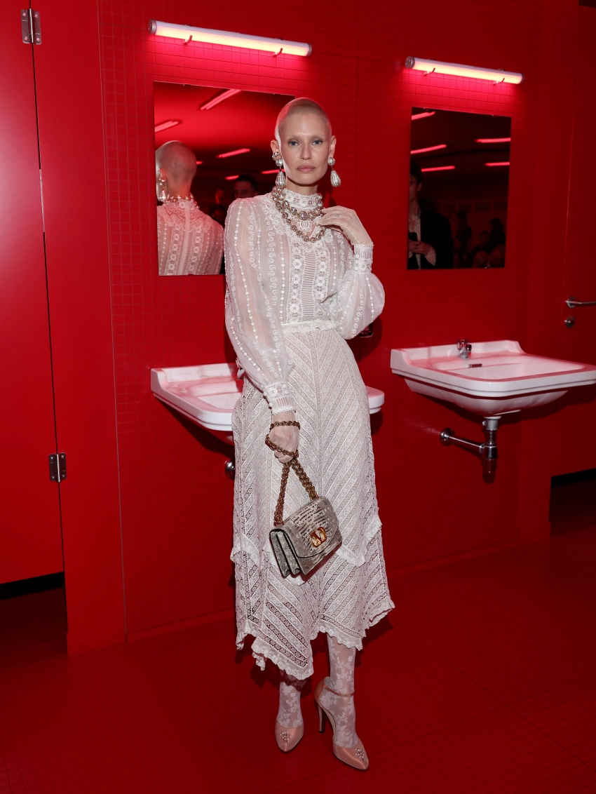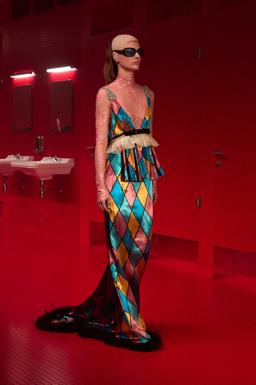 Бьянка Балти/Фото: Arnold Jerocki/Getty Images for ValentinoБьянка Балти/Фото: Arnold Jerocki/Getty Images for ValentinoДжорджина Родригес/Фото: Victor Boyko/Getty Images for ValentinoДжорджина Родригес/Фото: Victor Boyko/Getty Images for ValentinoБарри Кеоган/Фото: Victor Boyko/Getty Images for ValentinoБьянка Балти и Джаред Лето/Фото: Arnold Jerocki/Getty Images for ValentinoАлекса Чанг/Фото: Vittorio Zunino Celotto/Getty Images for ValentinoДарья Коновалова/Фото: Victor Boyko/Getty Images for ValentinoЧаппелл Рон/Фото: Victor Boyko/Getty Images for ValentinoПаркер Поузи и Софи Тэтчер/Фото: Victor Boyko/Getty Images for ValentinoКсения Шипилова/Фото: shipilovaks/TelegramТамара Калиник и Оксана Бондаренко/Фото: oxana_bondarenko/Instagram*Алина Цыганова/Фото: oxana_bondarenko/Instagram*Свою новую коллекцию креативный директор бренда Алессандро Микеле показал в декорациях общественных туалетов в ночных клубах, где модели дефилировали на фоне кабинок в шубах, вечерних платьях, кружевных колготках и боди. Они также носили чалму на голове, туфли с бантами и стразами, леопардовый принт, изделия с меховой отделкой и солнцезащитные очки в ретростиле.