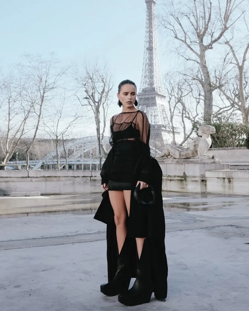 Первым онапосетила шоу Rick Owens: перед ним певица позировала в тотал-луке бренда и познакомилась с музой и супругой дизайнера Мишель Лами. Появление певица на этом показе и в целом на Неделе моды в Париже вызвало микроскандал в российском телеграме: стилист Михаил Барышников (который любит учить жизни людей) посчитал, что певице не место на показе концептуального бренда, а её стилист Николай Овечкин встал на защиту подопечной. После этого обмена мнениями к дискуссии насчёт того, кто и куда имеет право ходить, подключились ведущие околосветские каналы телеграма.