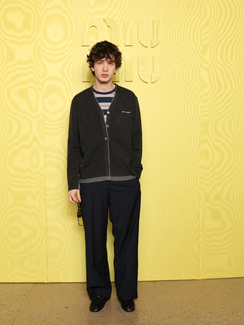 Марк Эйдельштейн/Фото: Pascal Le Segretain/Getty Images for Miu MiuA$AP Rocky/Фото: Pascal Le Segretain/Getty Images for Miu MiuАнна Делло Руссо/Фото: Pascal Le Segretain/Getty Images for Miu MiuЕлена Перминова/Фото: Pascal Le Segretain/Getty Images for Miu MiuДарья Коновалова/Фото: Pascal Le Segretain/Getty Images for Miu MiuМиучча Прада и Лотта Волкова представили осенне-зимнюю коллекцию Miu Miu 2025, исследуя женственность через сложные формы, многослойность и сочетание фактур. В коллекции — укороченные шубы Y2K, меховые жилеты, сюрреалистичные пальто, приталенные офисные костюмы, полупрозрачные сорочки, конусообразные бюстгальтеры под кардиганами, шерстяные носки до бедра и кожаные сапоги с пряжками. Палитра включает горчичный, тёмно-оливковый, жжёно-коричневый, фиолетовый, кислотно-зелёный и цвет морской пены. Аксессуары: крупные броши, многослойные браслеты и массивные украшения с цветочными мотивами. Шоу по традиции состоялось в Йенском дворце с нестандартной рассадкой, подчёркивающей силуэты одежды, а на подиуме появились Джиджи Хадид, Амелия Грей, балерина Пелагея Нецветаева-Долгалёва, актриса Сара Полсон, художница Наташа Гончарова и дочь Николь Кидман — Сандей Роуз.