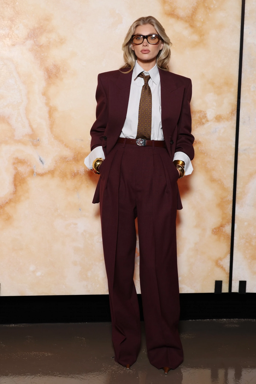 По подиуму прошлись Белла Хадид и обладательница титула "Модель года — 2024" Анок Яй, которые пропустили весь сезон и вышли только на шоу Saint Laurent. Анок перед показом сменила имидж и побрилась налысо.