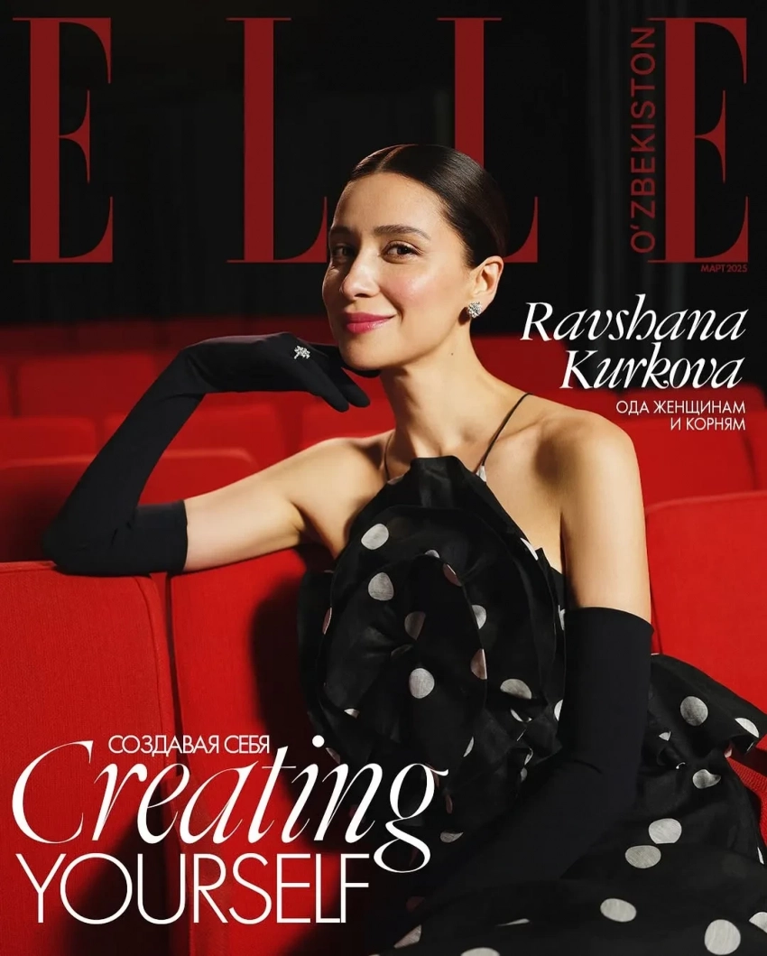 Равшана Куркова стала героиней двух обложек нового номера журнала Elle (Узбекистан), который выходит на русском и узбекском языках. На снимках 44-летняя актриса позирует в модных образах на фоне своего родного города Ташкента. Она примерила платье в горошек с высокими перчатками, пальто чёрного и оливкового оттенков с босоножками и белое платье.