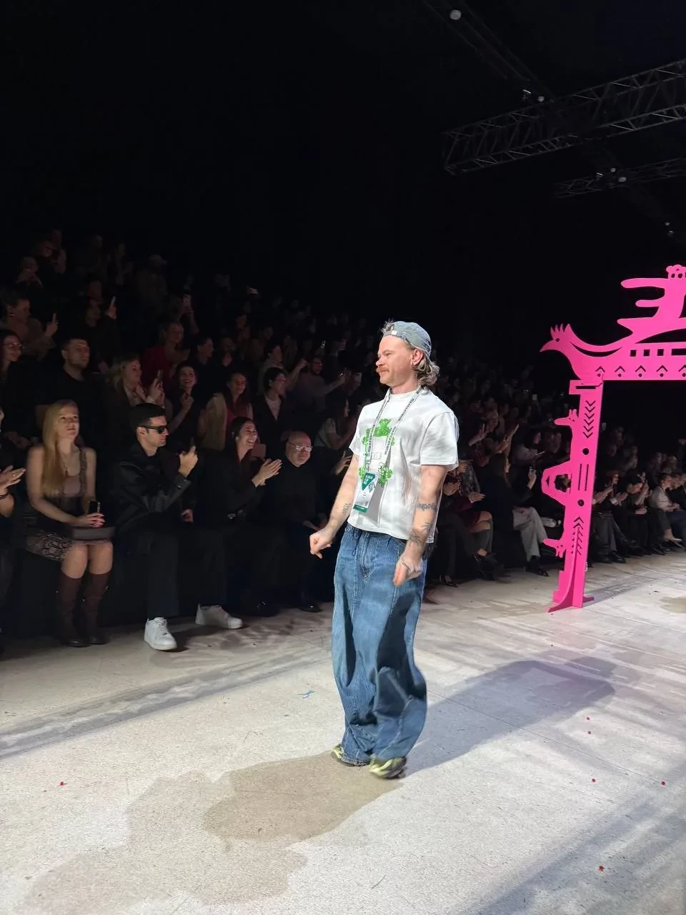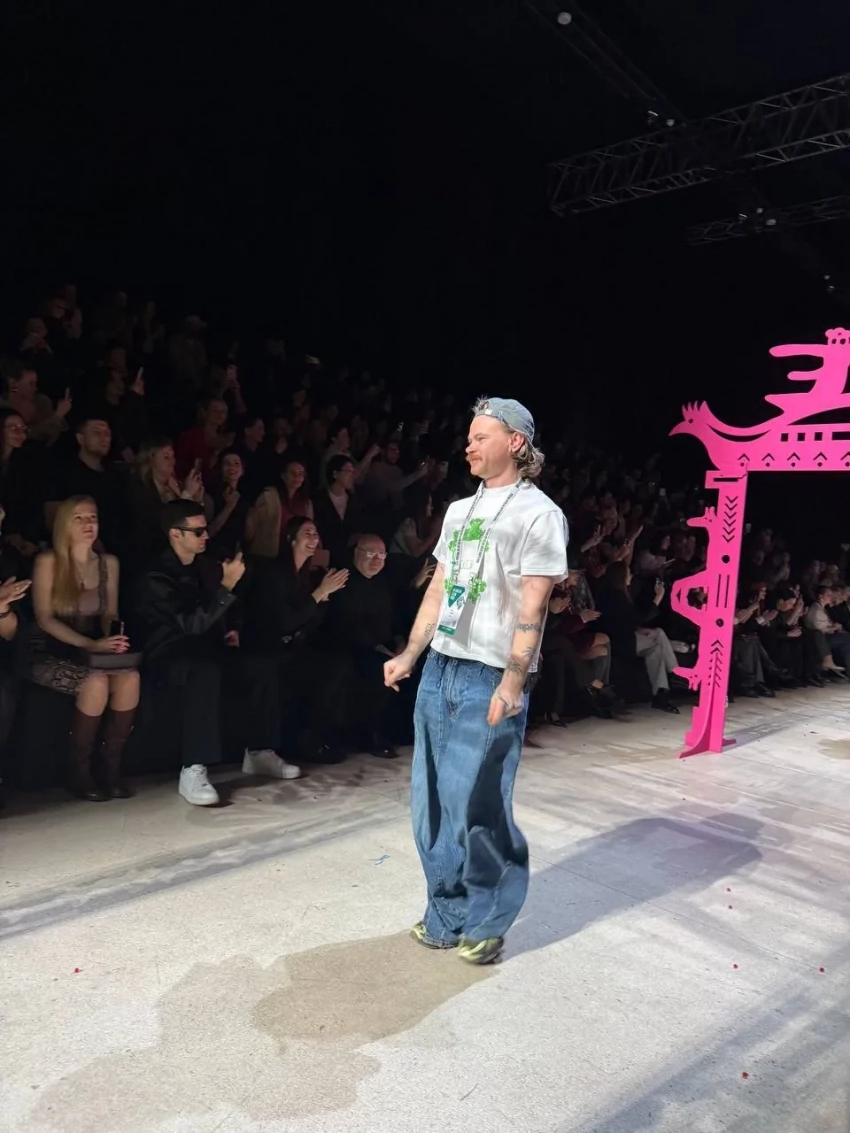 Ольга Карпуть открывала показ бренда, который основал стилист Игорь Андреев. Ксения Собчак вышла на подиум в объёмном зелёном платье, а Мария Миногарова дефилировала в платье "из ниток". В зале модель поддерживал её предполагаемый бойфренд, актёр Александр Горчилин. Когда Мария проходила мимо, он воскликнул: "Красотулечка!".