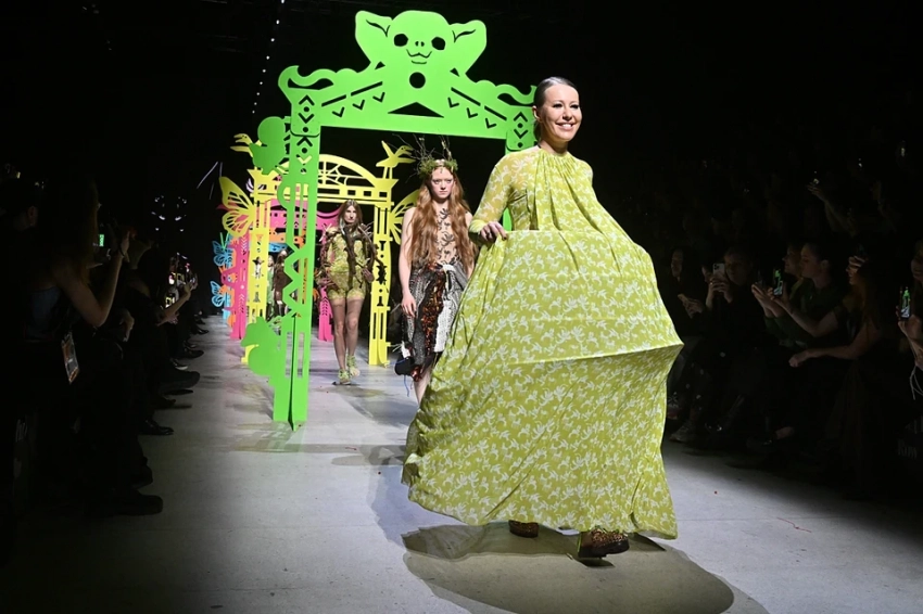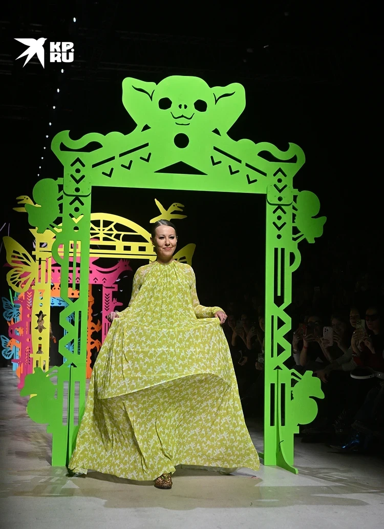 Открытие Московской недели моды: Собчак в платье «кукла на чайнике» от Vereja показала язык, а Рогов продемонстрировал буйство цвета и принтов