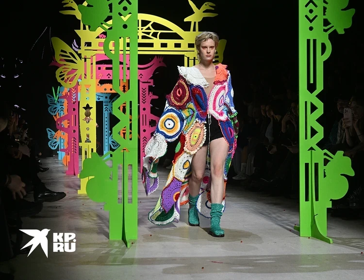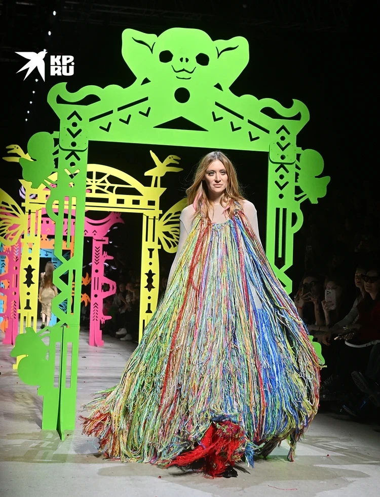 Весь показ Vereja был оригинально стилизован. На подиуме расставили цветные арки, через которые проходили модели в не менее ярких образах. По подиуму также прошлась известная модель и блогер Мария Миногарова. Маша продемонстрировала платье из разноцветной бахромы, которая не теряет своей актуальности. Наоборот, кажется, что в новом сезоне бахромы стало еще больше!
