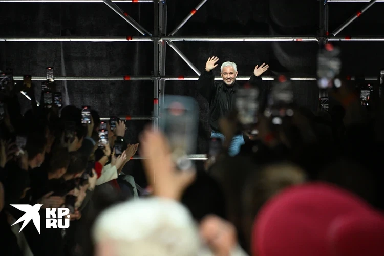 В конце показа под овации публики вышел сам Александр, одетый в джинсы и черный бомбер.