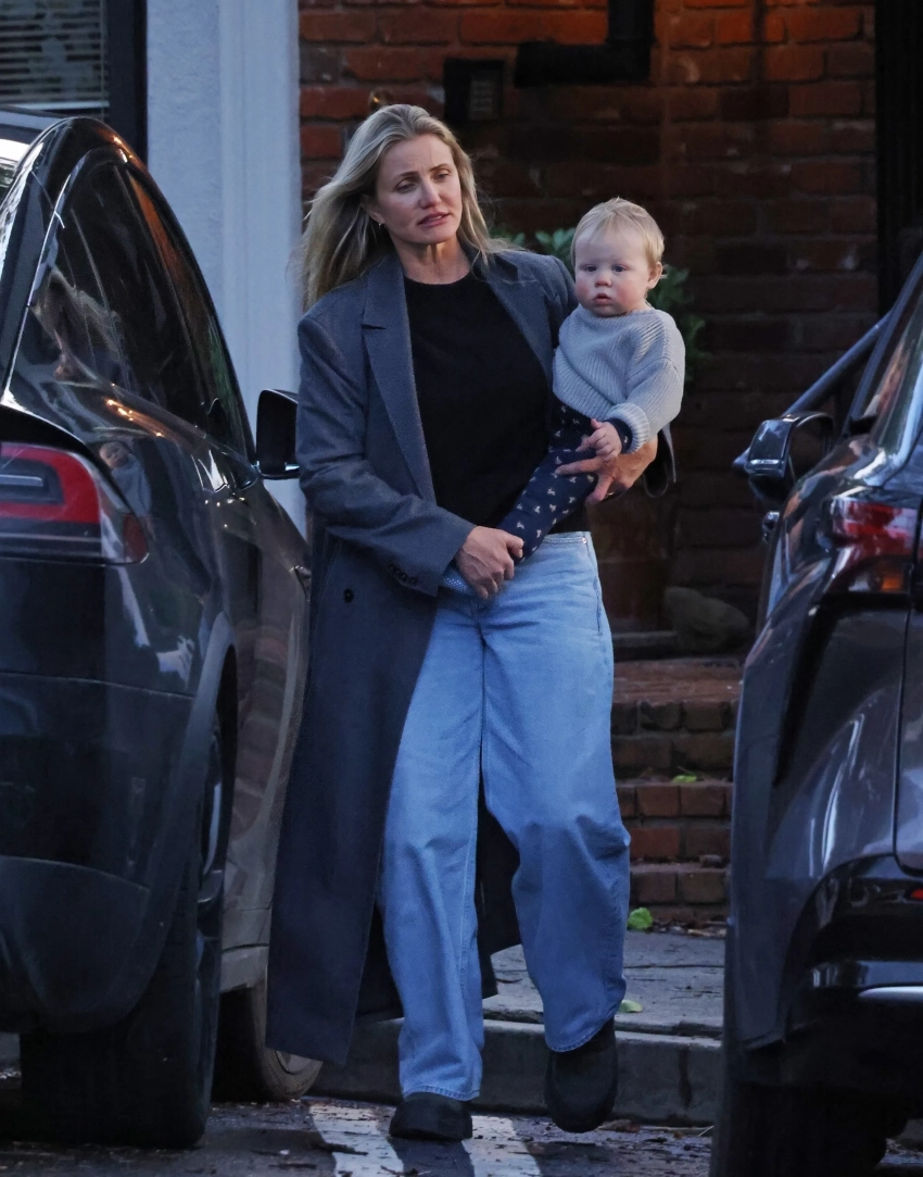 52-летняя Кэмерон Диас попала в объективы папарацци вместе с годовалым сыном Кардиналом. Актриса выходила из ресторана в Санта-Барбаре, когда ее подловили репортеры.