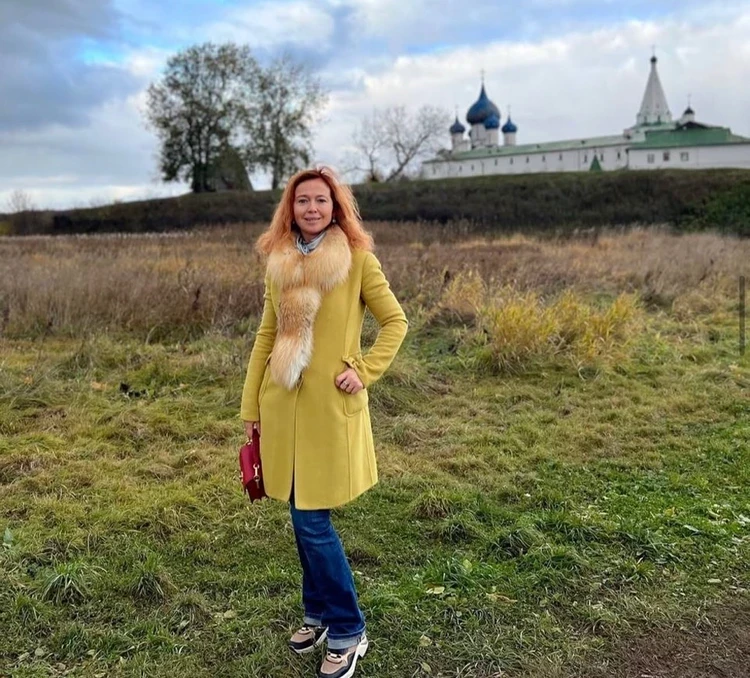Желтый цвет Елене, безусловно, идет. Но все остальное в этом образе нужно менять. Лисий воротник можно оставить, но само пальто сделать объемнее. Модели в облипку были в моде лет 15 назад. Да и джинсы уже давно никто не подворачивает. Впрочем, как и не носит такие кроссовки. Хотя нет, их можно надевать, но куда-нибудь в поход.