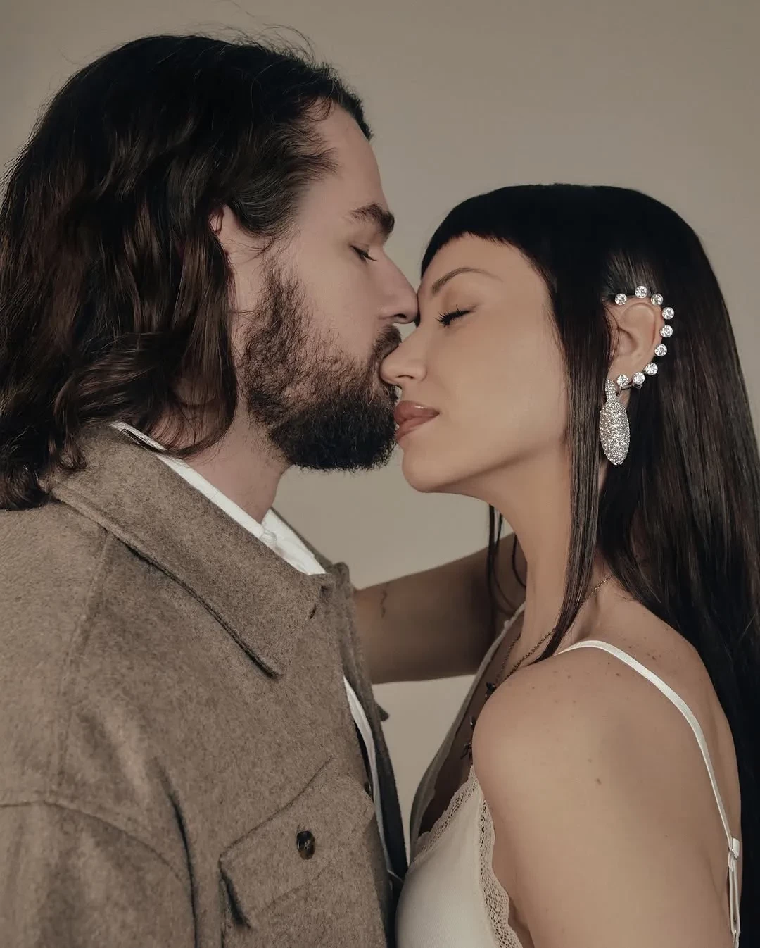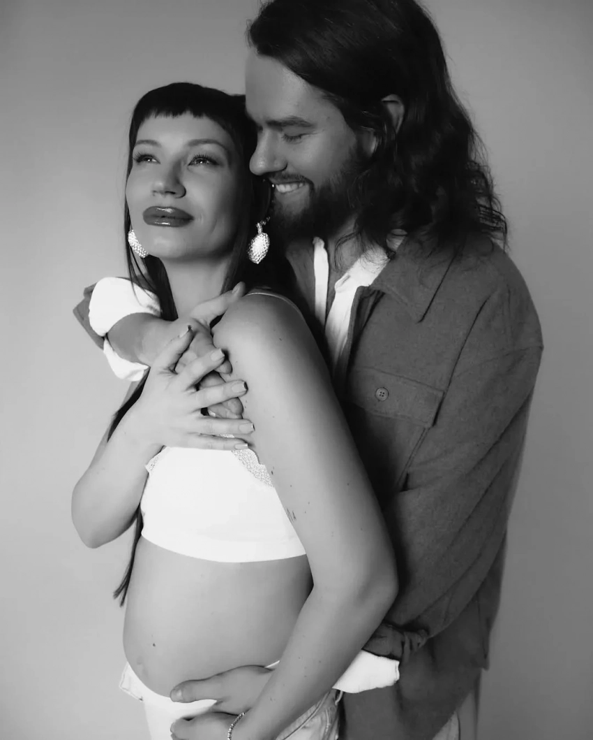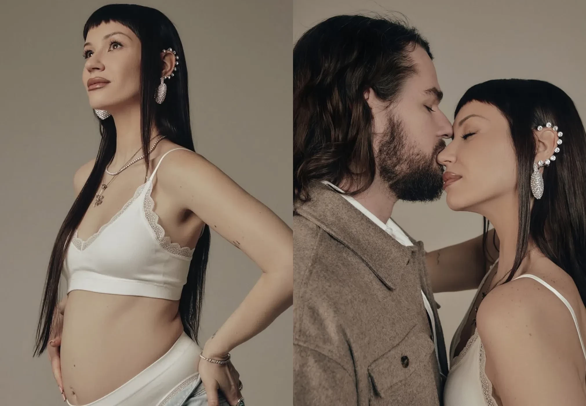 Ида Галич снялась в новой фотосессии в преддверии рождения второго ребёнка. На снимках 34-летняя блогерша позирует в кадре вместе с женихом Олегом Ледвичем.
