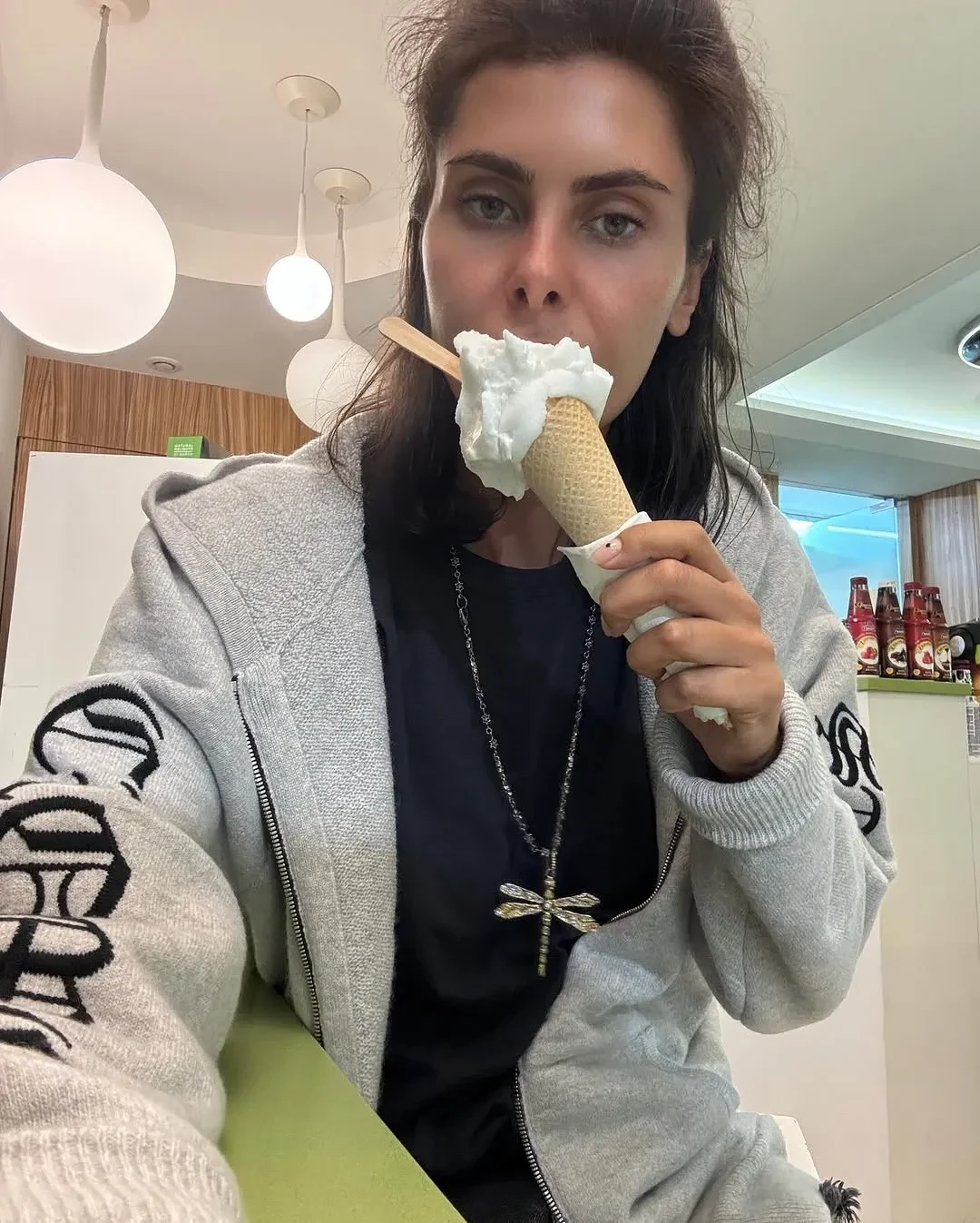 На фото Надежда позирует на пляже в купальнике с фламинго, занимается йогой, отдыхает в местных ресторанах, выгуливает модные образы с сумкой Hermes и ювелирными украшениями, водит машину и наслаждается местными пейзажами и закатами.
