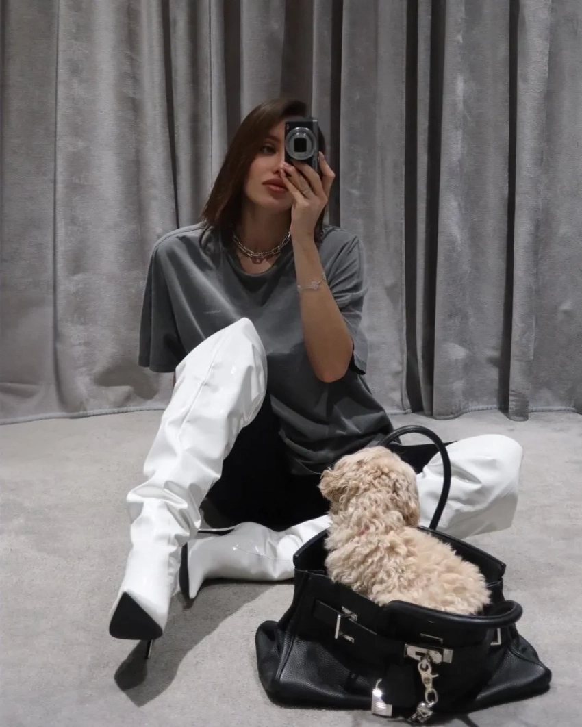 На новом снимке Валентина и Тимати проводят время в ресторане. Иванова слегка приобняла рэпера, а тот смеётся. Также Валентина добавила несколько своих снимков: один в более повседневном образе с белыми сапогами, другой — с чёрной шубой и штанами того же цвета. "Весеннее настроение", — подписала Иванова фотографии.