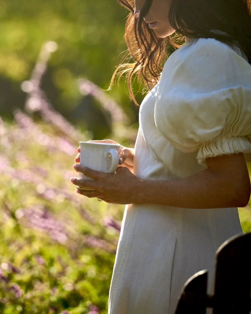 На новом снимке Меган позирует в саду. Герцогиня Сассекская одета во всё белое и собирает овощи. Также Маркл добавила несколько своих фото без лица: на одном она размешивает варенье своего бренда, а на другом позирует в белом домашнем платье с кружкой в руках.