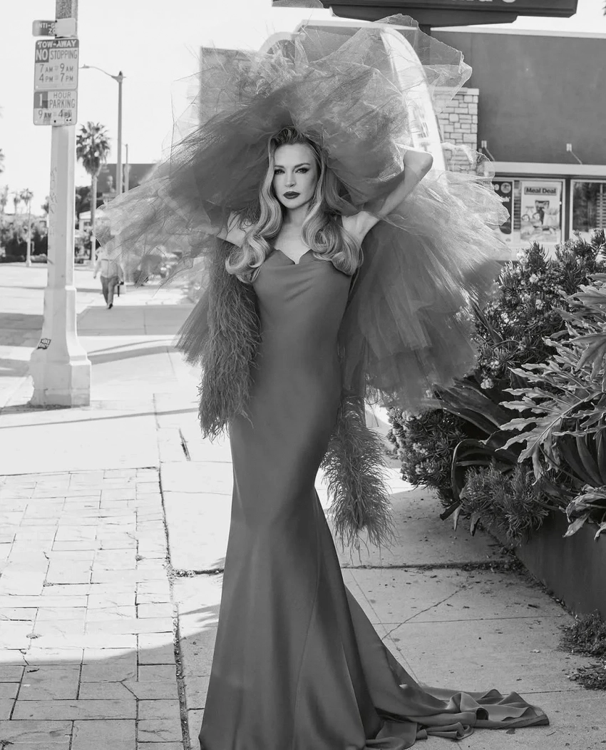 Голливудская актриса Линдси Лохан стала героиней апрельского номера журнала Vogue Czechoslovakia (издаётся на территории Чехии и Словакии). На снимках 38-летняя звезда нулевых позирует в нуарных образах Jean Paul Gaultier by Ludovic de Saint Sernin, Chanel, Valentino и Patou.