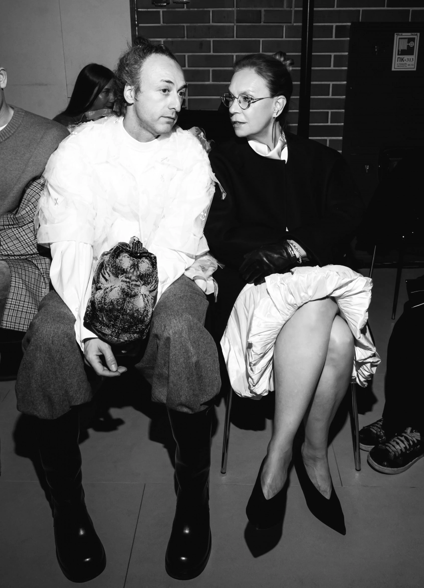 Марк ЭйдельштейнКсения ШипиловаКсения Шипилова и Марк ЭйдельштейнЕлена ПерминоваЕлена ПерминоваАлександр Горчилин и Мария МиногароваАлександр РоговРоман Крихели и Алёна ДолецкаяМиша и КиттиСаша БуримоваЕвгений Давыдов и Саша ЖарковаВиктория СалаватКсения ДукалисЕлена КрыгинаКсения ЧилингароваКатя КонасоваСаша СулимИлья и Никита ХованскиеAnikvИгорь АндреевАлександра РевенкоКсения КитаеваЛина ДембиковаМаша ФёдороваСлава Копейкин и Яна ЕжоваНиколай ОвечкинОткрыла показ 26-летняя Алеся Кафельникова в красном платье You Wanna, а закрыл 42-летний Данила Поляков, который недавно вернулся в модную индустрию после длительного перерыва и стал новым лицом бренда Гоши Рубчинского. Также по подиуму прошлись: соосновательница агентства Setters Саша Жаркова, основательница агентства Lumpen Авдотья Александрова и её возлюбленный Александр Гриднев, Диана Коркунова, сын Игоря Веника Григорий, инфлюенсер Эля Абрамова и другие модели.
